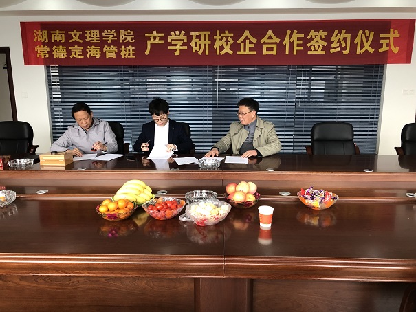 2020年3月,常德定海管樁有限公司與湖南文理學(xué)院簽訂產(chǎn)學(xué)研合作協(xié)議??偨?jīng)理陳吉果與學(xué)院領(lǐng)導(dǎo)現(xiàn)場(chǎng)簽約并授牌。